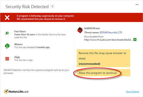 You see, there are two ways that antivirus software identifies a malicious program. The primary method is to examine the computer code inside the program to see if it matches any known malicious code. Every time a new virus is discovered, security companies like Symantec (the owners of Norton Security) analyze the code of the virus so a definition can be created for this purpose. This is why you must regularly update the virus definitions of your security program. However, this is not what happened here because a specific virus was not found.